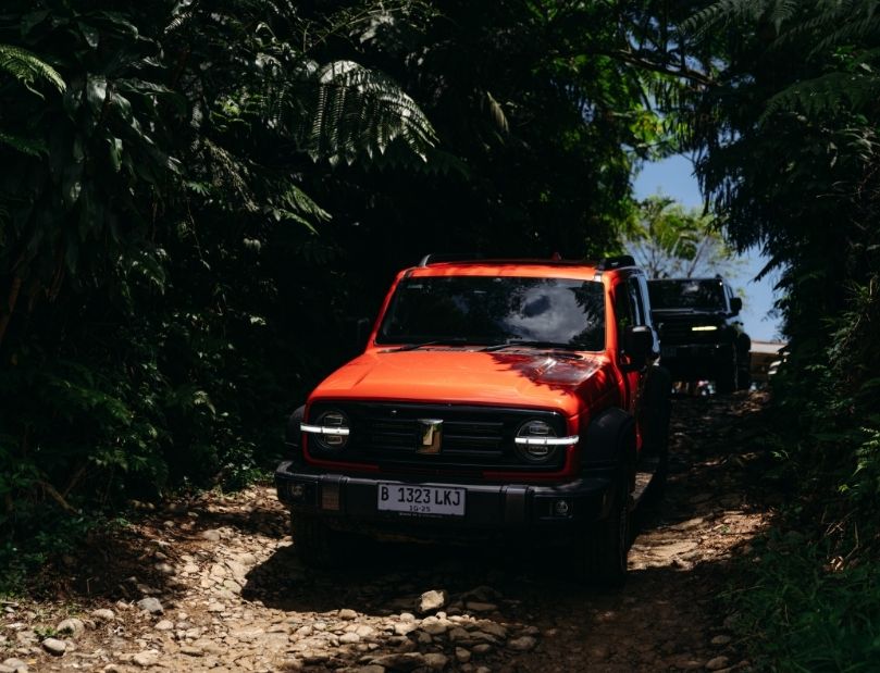 Pengemudi juga berkesempatan untuk menguji mode penggerak sesuai kondisi: 4H untuk lintasan tanah dan kerikil, serta 4L untuk medan ekstrem yang menuntut torsi maksimal. Transmisi longitudinal 9AT semakin terasa manfaatnya di jalur sulit, dengan perpindahan gigi halus dan minim jeda, sehingga tenaga tersalurkan mulus tanpa hentakan, menjaga kenyamanan dan kontrol di medan berbatu.